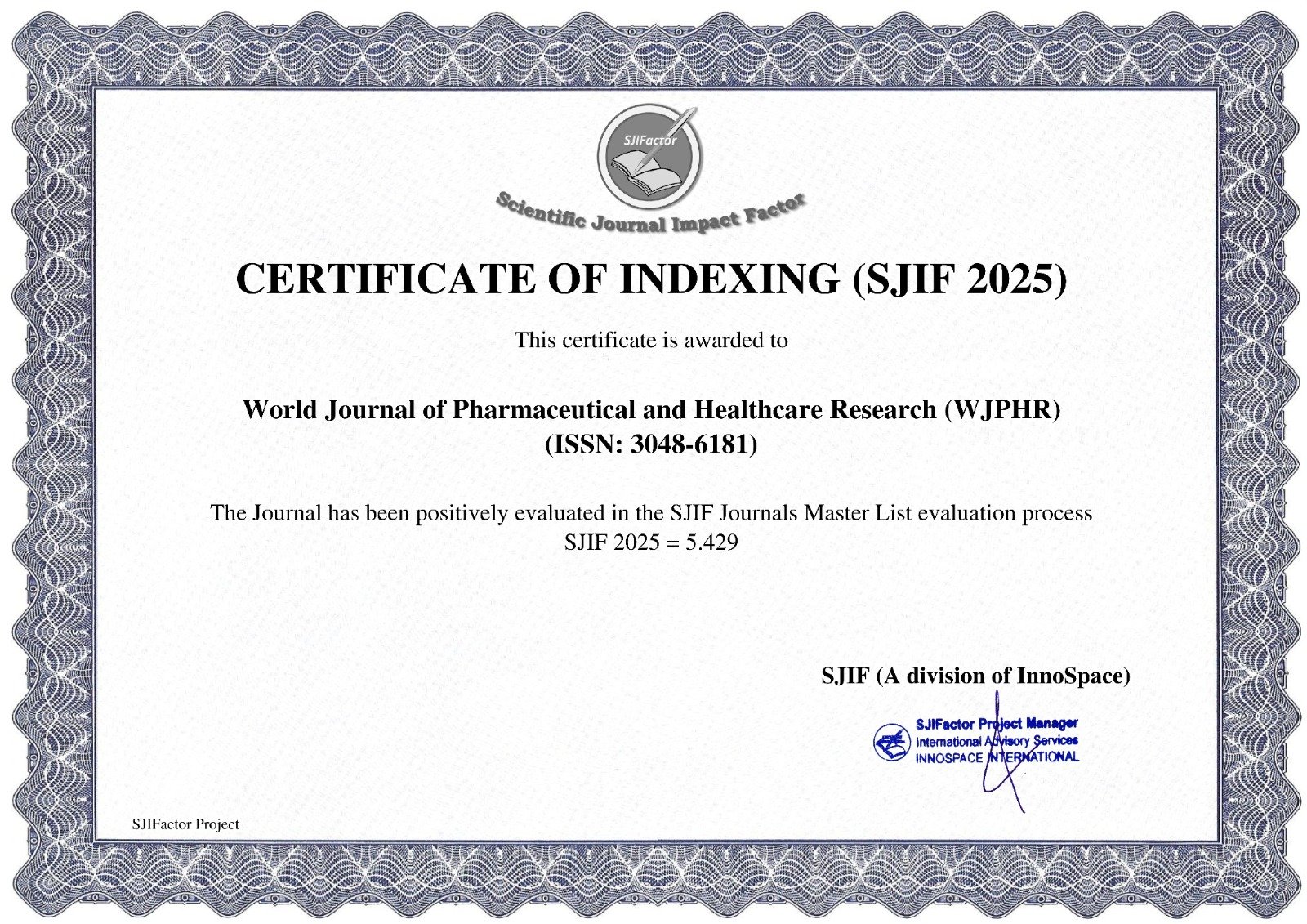 World Journal of Pharmaceutical and Healthcare Research (WJPHR) is an International Open Access/ Peer Reviewed Research Journal, Published in English Language, which provides free access to countless e-learning resources designed to support researchers on every step of their research journey. WJPHR is a widely indexed, open access, refereed / peer reviewed, Pharmaceutical, Medical Sciences, international, scholarly online Monthly publishing research journal, and helping researches to share their research work. WJPHR Publish Original Articles, Review Article, Brief Reports, Case Studies, Short Communication and Research Letters